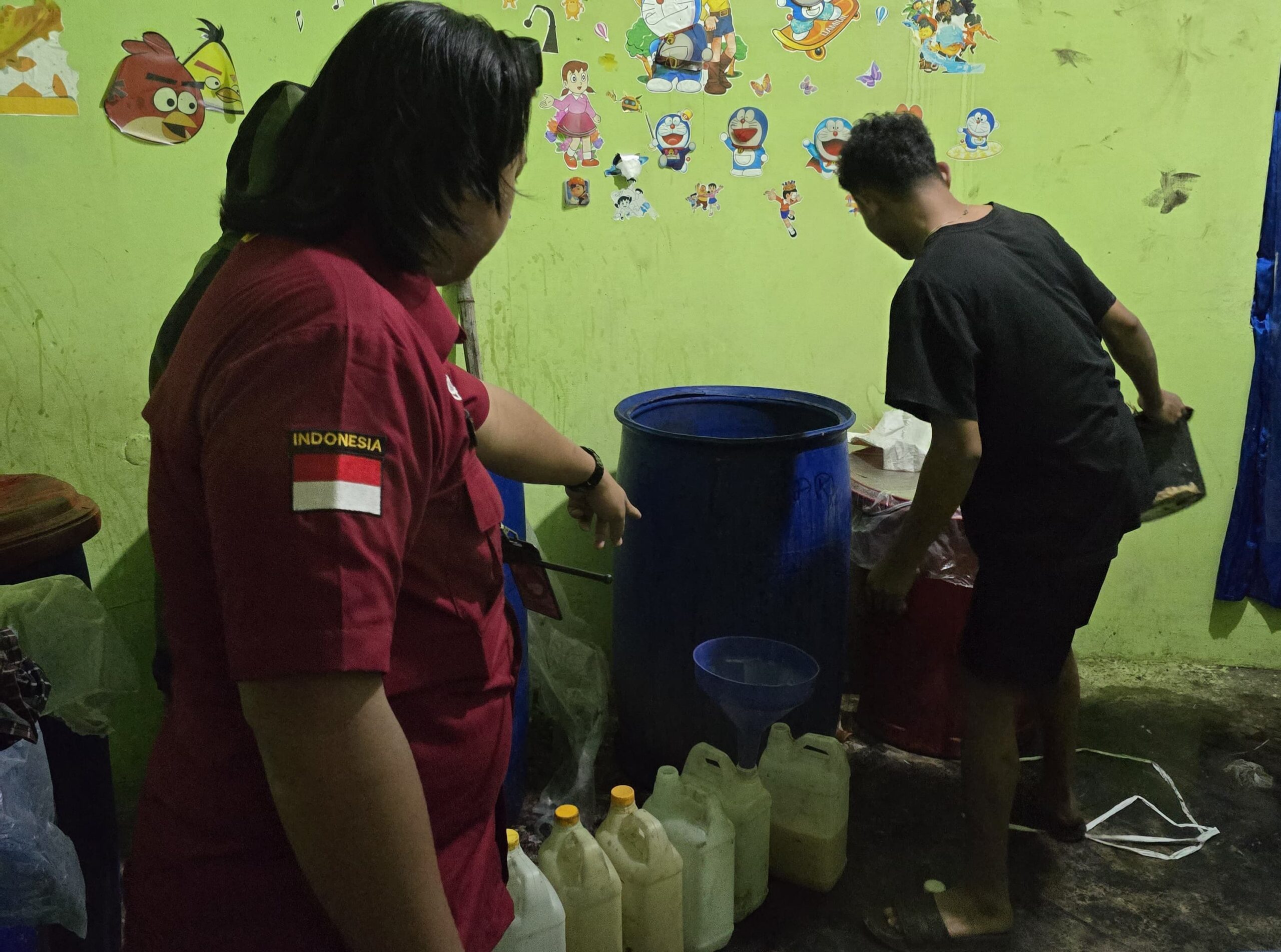 Dalam kegiatan tersebut, dari hasil penelusuran petugas mengamankan seorang terduga pelaku dan menemukan sejumlah barang bukti peralatan yang diduga digunakan untuk memproduksi minuman keras lokal jenis Cap Tikus beserta 5 ember yang berisi rendaman bahan baku pembuatan minuman keras lokal cap tikus (CT).