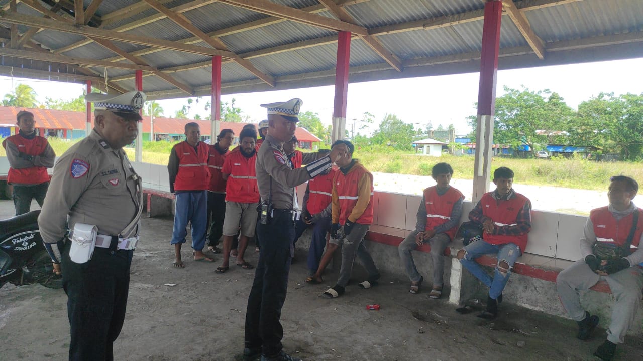 Sarmi – Dalam rangka mendukung pelaksanaan Operasi Zebra Cartenz 2025, Anggota Satuan Lalu Lintas Polres Sarmi melaksanakan kegiatan pembinaan dan penyuluhan (Binluh) kepada komunitas ojek yang beraktivitas di kawasan Pasar Sentral Mararena, Jumat (21/11/2025).