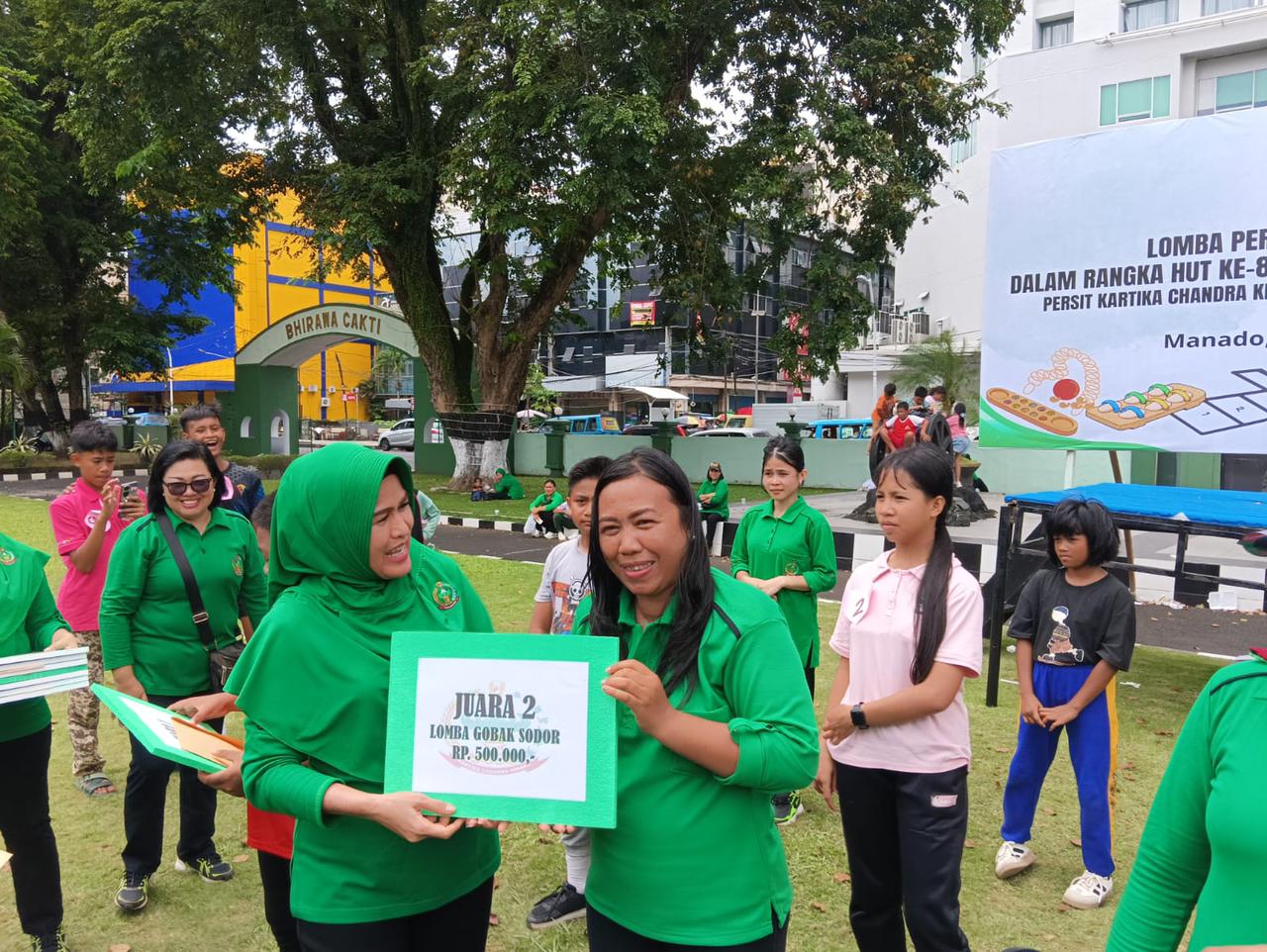 Dari hasil lomba yang diselenggarakan panitia, Persit KCK Cabang LXII Kodim 1310/Bitung berhasil meraih Juara 2 pada Lomba Gobak Sador dan Lomba Lari Batok Kelapa.